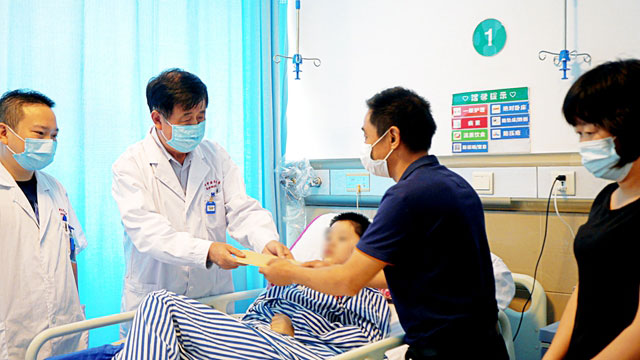 事实上,两个月四处求医的花费已经让这个普通的工人家庭难堪重负。在得知他们的资金困境后,医院主动为他们减少了部分治疗和住院费用,医院的医务人员也有不少伸出援手进行捐赠,广州中医药大学金沙洲医院副院长、国际肿瘤医疗中心执行主任兼放疗科主任王洋教授更是亲手送上了医院和科室及自己的一份心意。